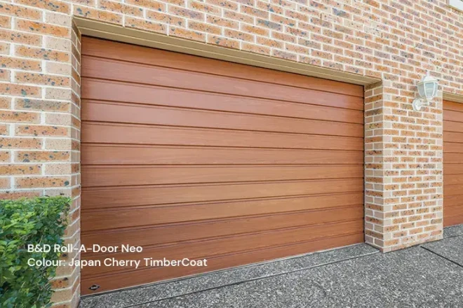 Timber look roller doorsExclusive to B&D, the Timber Coat range offers stylish wood-look finishes to replicate the look and feel of textured timber. Explore our range of colours and styles.