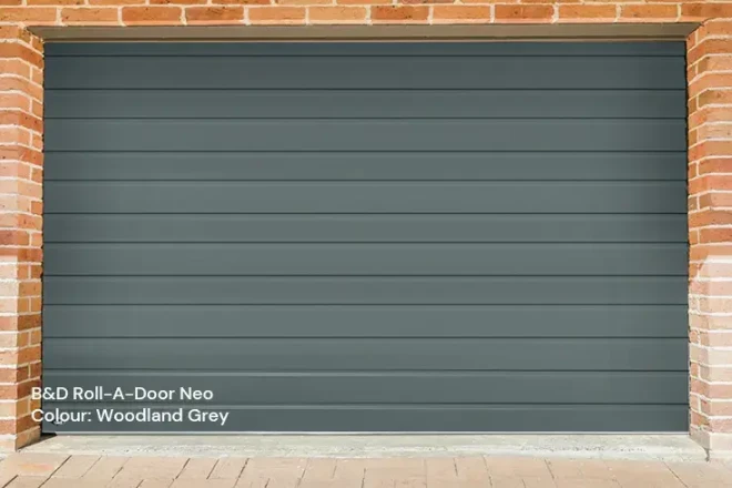 Roll-A-Door NeoSectional door look, roller door functionality. With broader panels for a more contemporary look, the Roll-A-Door Neo still functions as a roller garage door saving you space when compared to other modern door styles.